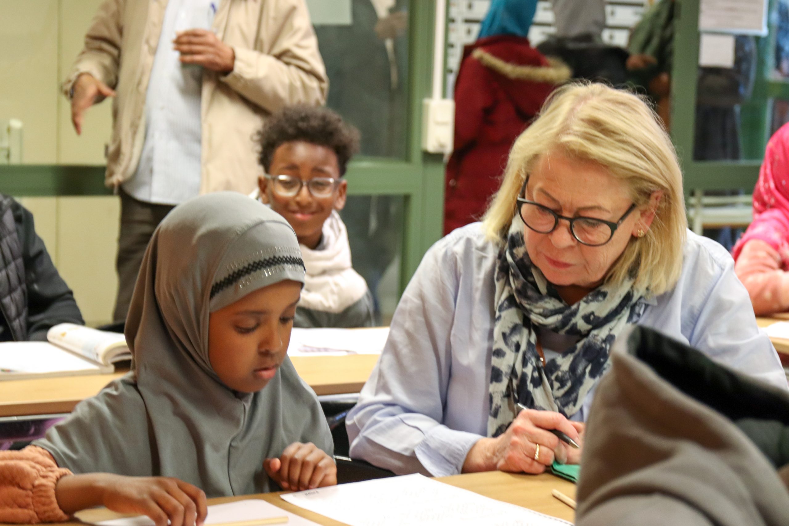 Vi har också speciallärare för barn med kognitiva problem som till exempel adhd eller dyslexi (svårighet att läsa). Lärarna hjälper barnen en och en, och ibland i små grupper. Det finns gott om möjligheter att ställa frågor och öva.